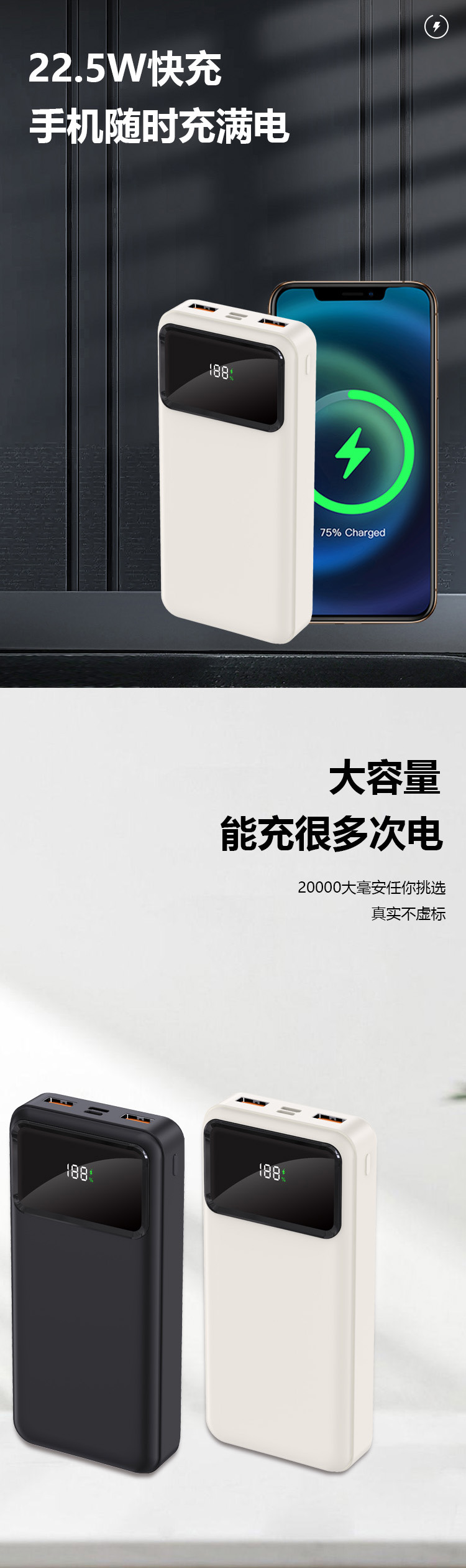 大屏数显两万毫安充电宝